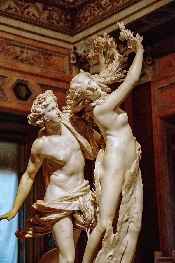 The allegory of Daphne and Apollo symbolizes the (cliché) struggle between chastity and lust. In art both are usually depicted with Apollo chasing Daphne.
